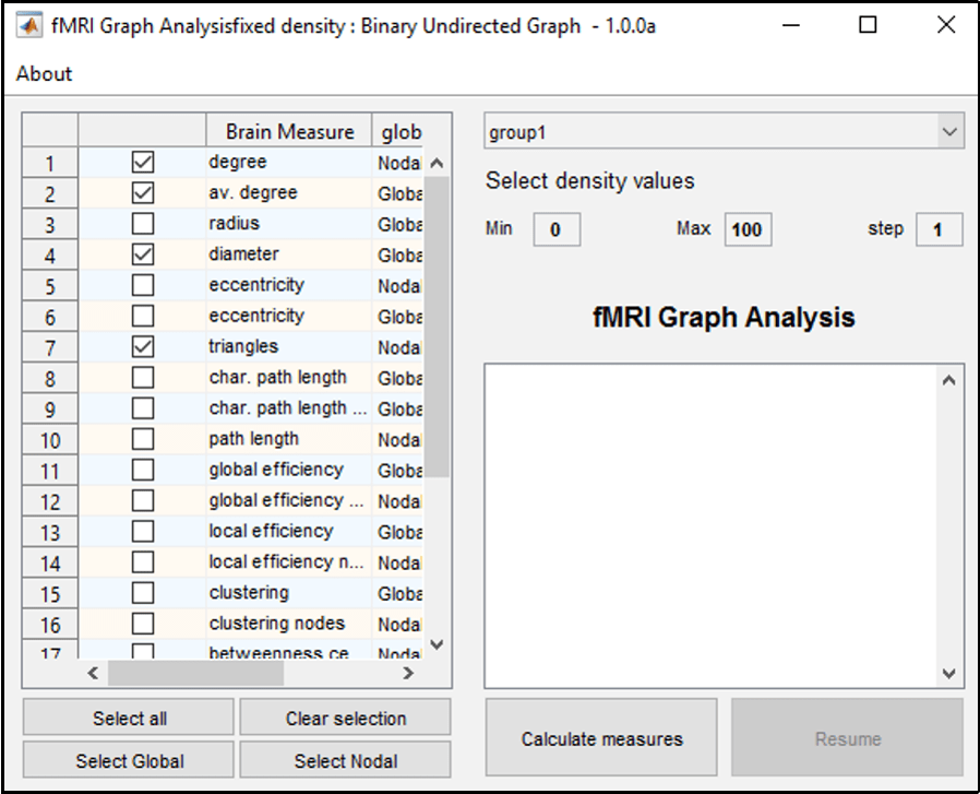 Figure 2: Interface to calculate group measures.