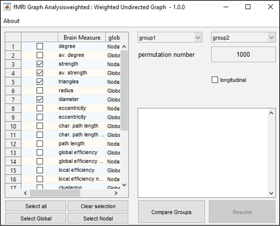 Figure 4: Interface to compare the measures of two groups.