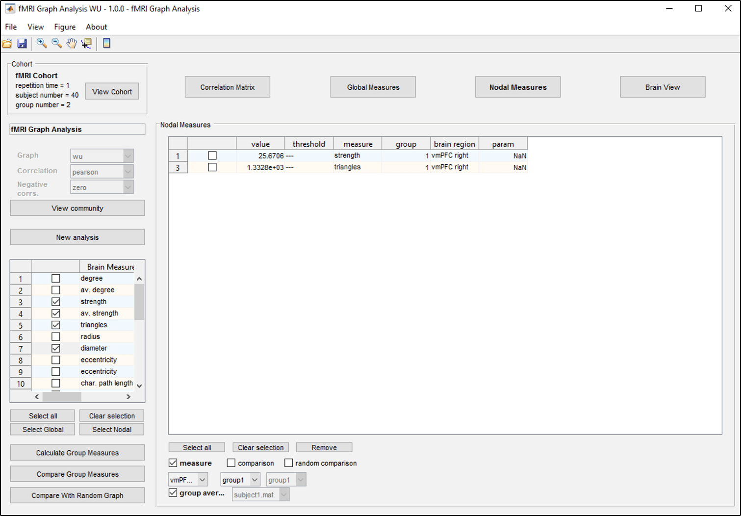 Figure 6: Nodal measures tab.