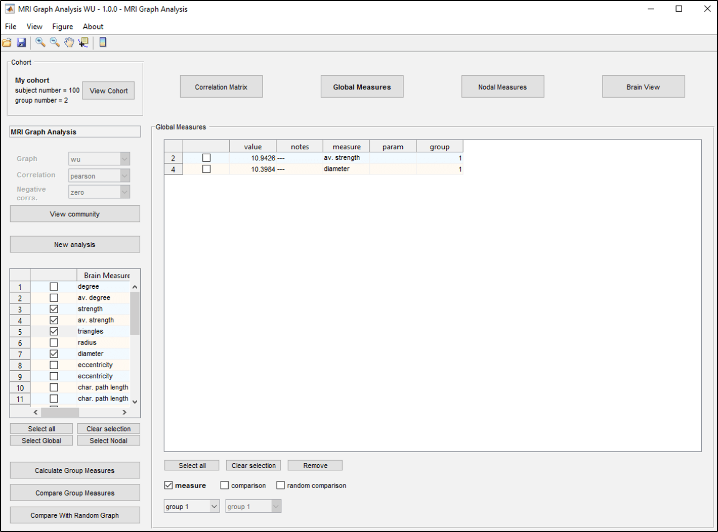 Figure 5: Global measures tab.